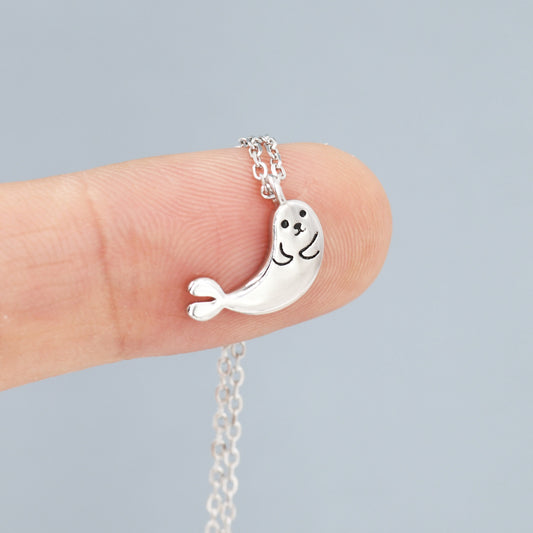Cute Seal Pendant Necklace in Sterling Silver, Baby Seal Necklace, Nature Inspired Jewellery, Dainty and Delicate, Kawaii Necklace