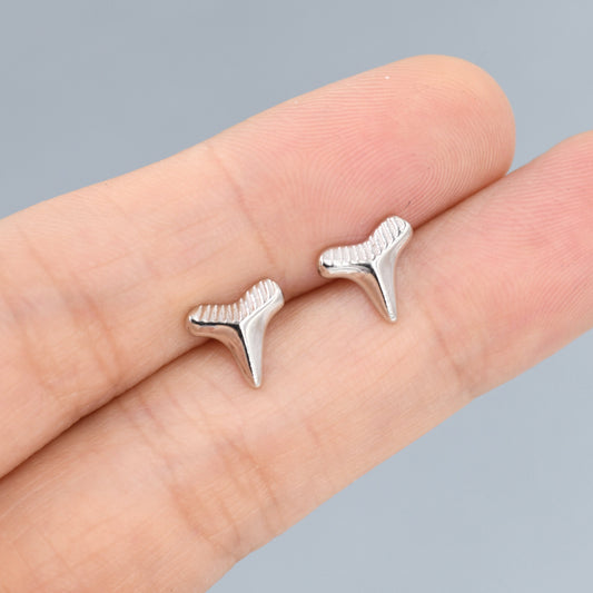 Shark Tooth Design Stud Earrings in Sterling Silver, Silver or Gold, Shark Tooth Shape Earrings, Animal Earrings, Nature Inspired