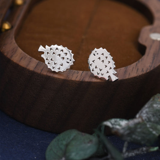 Sterling Silver Puffer Fish Stud Earrings in Sterling Silver, Silver Fish Earrings, Silver Puffer Fish Earrings, Silver or Gold, Blowfish