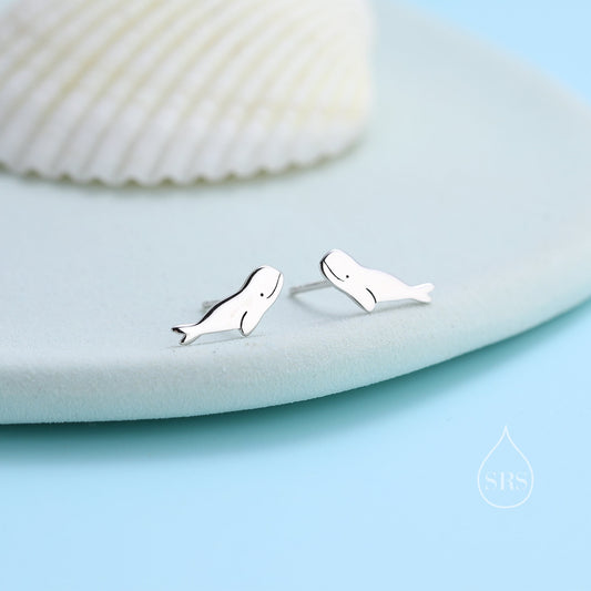 Beluga Whale Stud Earrings in Sterling Silver, Whale Fish Earrings, Tiny Fish Earrings, Whale Earrings