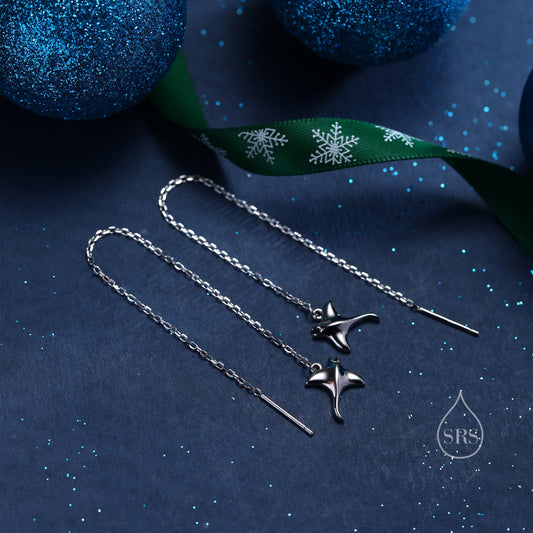 Sterling Silver Manta Ray Fish Long Ear Threaders, Stingray Threader Earrings, Dainty Fish Dangle Earrings