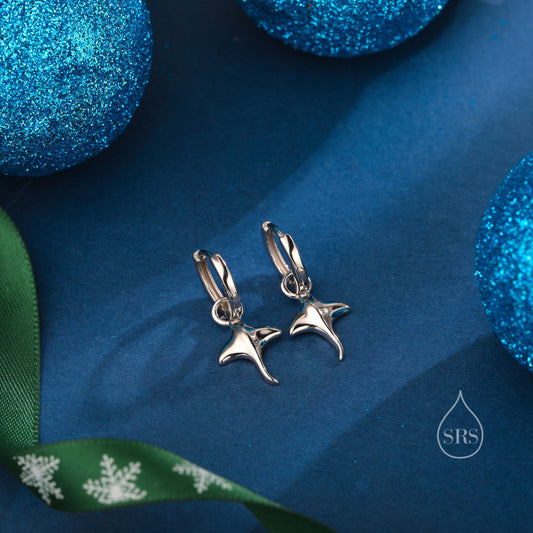 Tiny Shark Fish Huggie Hoop Earrings in Sterling Silver, Fish Earrings,Shark Fish Dangle Hoops, Fish Hoops, Ocean Animal Earrings