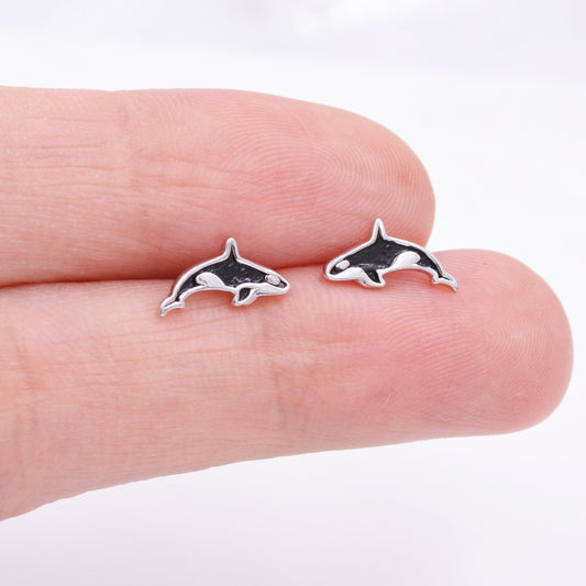 Killer Whale Stud Earrings in Sterling Silver, Fish Earrings, Ocean Theme Stud, Cute Dainty Minimal Jewellery