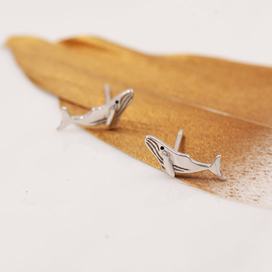 Humpback Whale Stud Earrings in Sterling Silver - Petite Fish Stud - Sea, Ocean, Cute, Fun, Whimsical
