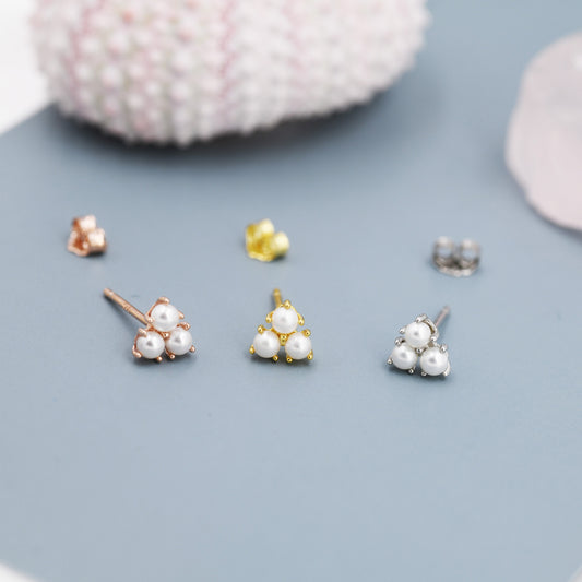 Pearl Trefoil Stud Earrings in Sterling Silver, Pearl Trio Earrings, Three Pearl Earrings, Silver Gold or Rose Gold