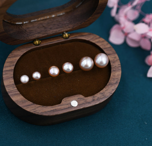 Genuine Purple Pink Pearl Stud Earrings in Sterling Silver, 6mm - 8mm, Small Pearl Stud and Large Pearl Stud, Silver pearl Earrings,