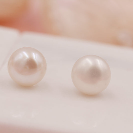 Genuine Pink Pearl Stud Earrings in Sterling Silver, 5mm - 8mm, Small Pearl Stud and Large Pearl Stud, Silver pearl Earrings,