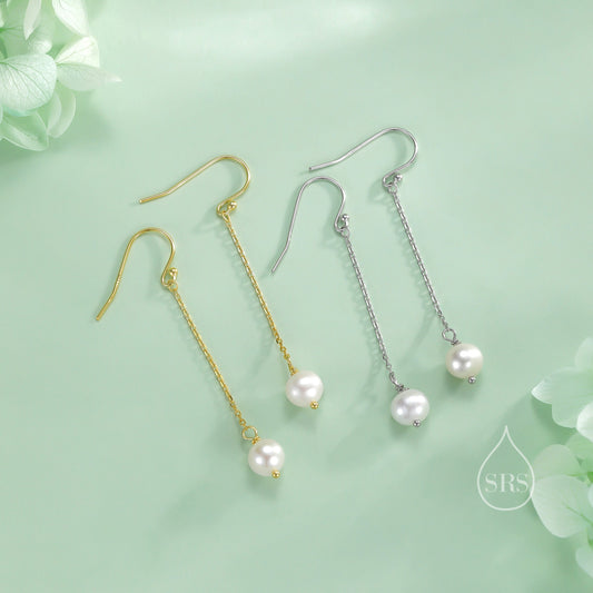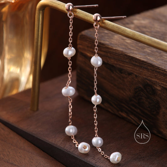 Sterling Silver Natural Pearl Cascade Earrings, Silver or Gold or Rose Gold, Genuine Freshwater Pearl Drop Dangle Earrings, Real Pearls