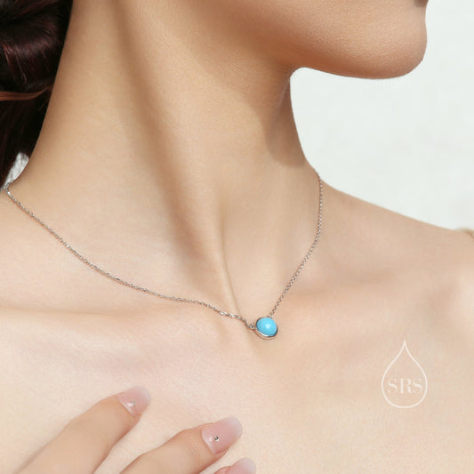 Sterling Silver Genuine Turquoise Dainty Coin Pendant Necklace - Delicate Blue Turquoise Stone Coin Necklace