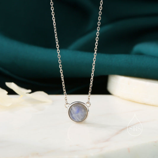 Sterling Silver Genuine Labradorite Dainty Coin Pendant Necklace - Delicate 8mm Labradorite Stone Coin Necklace, Grey Moonstone Necklace
