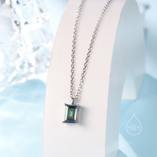 Emerald Cut Mystic Black CZ Pendant Necklace in Sterling Silver, Rectangular Cut Crystal Earrings, Mystic Topaz