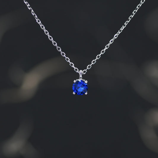 Sapphire Blue CZ Pendant Necklace in Sterling Silver, 0.5 carat Sapphire Blue Zircon Necklace, Blue Necklace