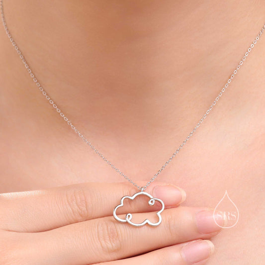 Cloud Outline Pendant Necklace in Sterling Silver, Silver or Gold, Cloud necklace, Fun and Quirky Necklace