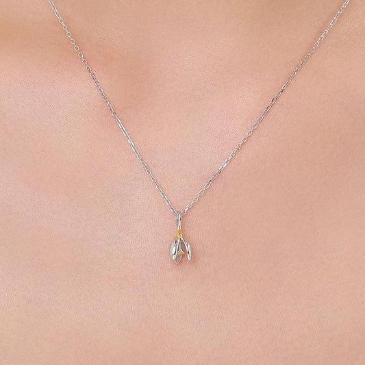 Snowdrop Flower Tiny Pendant Necklace in Sterling Silver, Nature Inspired Flower Necklace, January Birth Flower, Botanical