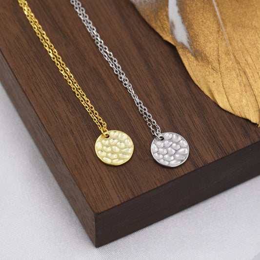 Hammered Disk Pendant Necklace in Sterling Silver, Silver or Gold, Minimalist Geometric Design, Coin Necklace