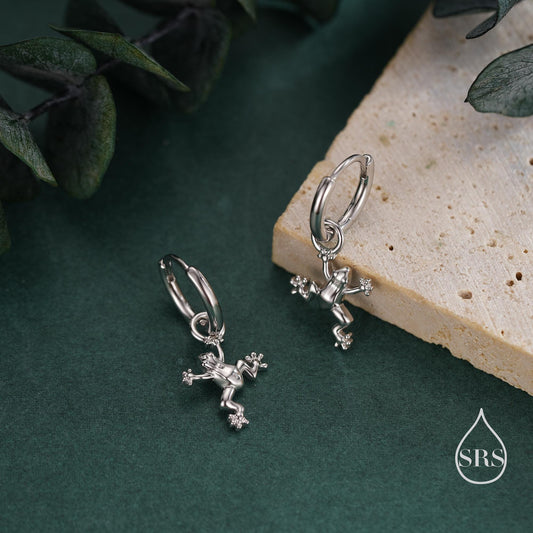 Frog Huggie Hoop Earrings in Sterling Silver - Available in Silver or Gold or Rose Gold Finish - Detachable Frog Charm Hoops