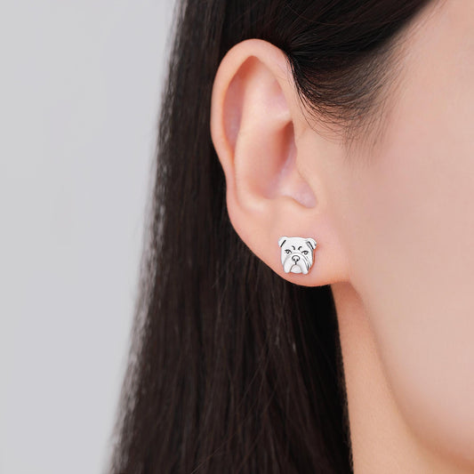 Cute Bulldog Stud Earrings in Sterling Silver, Silver, Gold or Rose Gold, Small Bulldog Earrings, Silver Dog Earrings