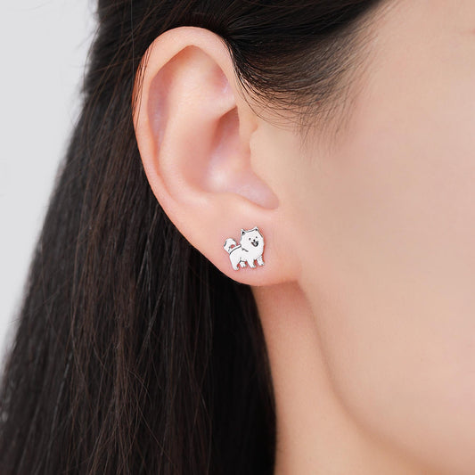 Pomeranian Dog Sterling Silver Stud Earrings, Silver or Gold or Rose Gold Finish, Small Spitz Dog Earrings, Silver Dog Earrings