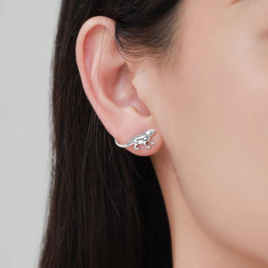 Tiny Bearded Dragon Stud Earrings in Sterling Silver, Silver or Gold or Rose Gold, Lizard Animal Earrings, Nature Inspired Pet Jewellery