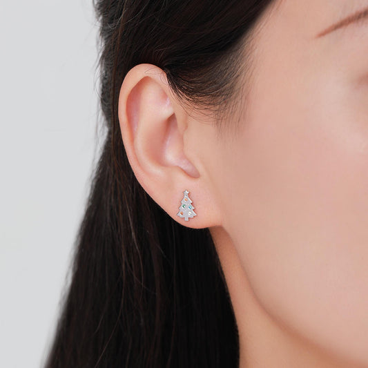 Tiny Christmas Tree Stud Earrings in Sterling Silver, Silver or Gold or Rose Gold Finish, Tiny Xmas Tree Earrings, Christmas Earrings