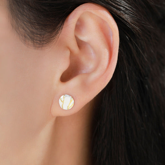 Japanese Kintsugi Inspired Disk Stud Earrings in Sterling Silver, Kintsugi - Art of Embracing of the Flawed or Imperfect