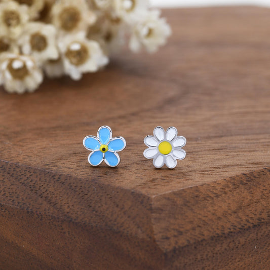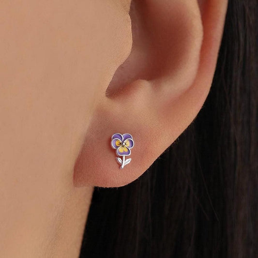 Pansy Enamel Stud Earrings in Sterling Silver, Colourful, Sweetly Detailed Flower Earrings, Nature-Inspired Jewellery