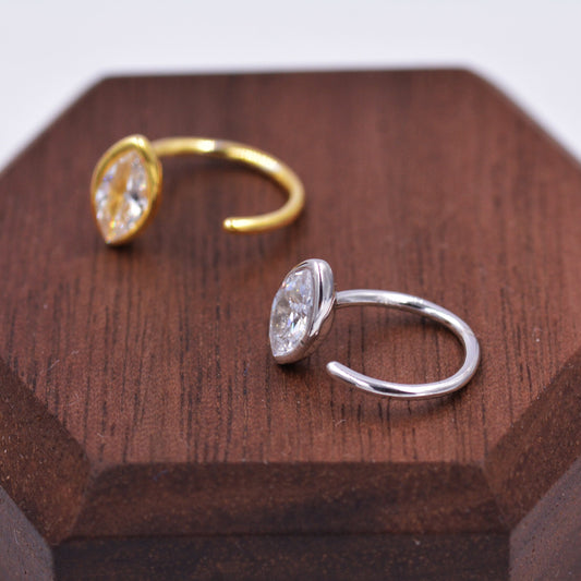 Clear CZ Crystal Marquise Huggie Hoop Threader Earrings in Sterling Silver, Gold or Silver, Pull Through Open Hoop Earrings