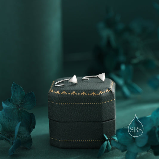 Tiny Triangle Huggie Hoop Earrings in Sterling Silver, Open Hoop Pull-Through Threader Earrings, Half Hoop Earrings, Silver, Gold, Rose Gold