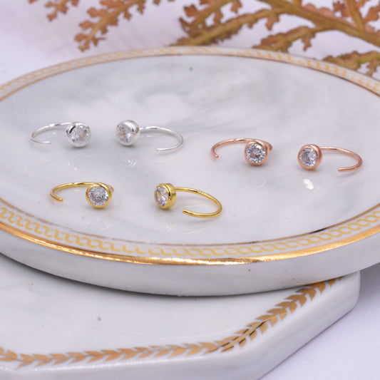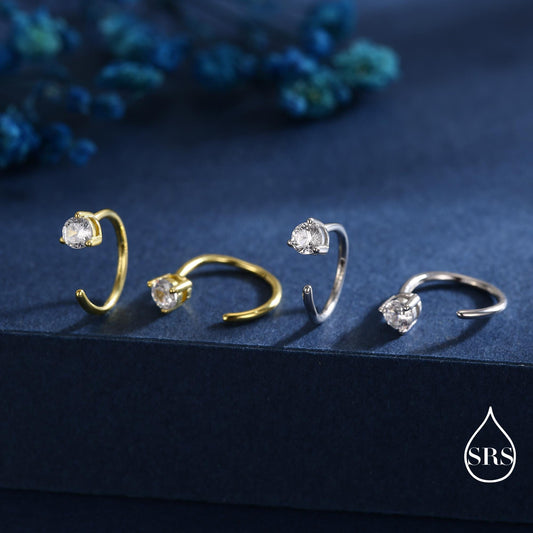 CZ Huggie Hoop Threader Earrings in Sterling Silver, 3mm Three Prong, Gold or Silver, Half Hoop Earrings, Pull Through Open Hoops