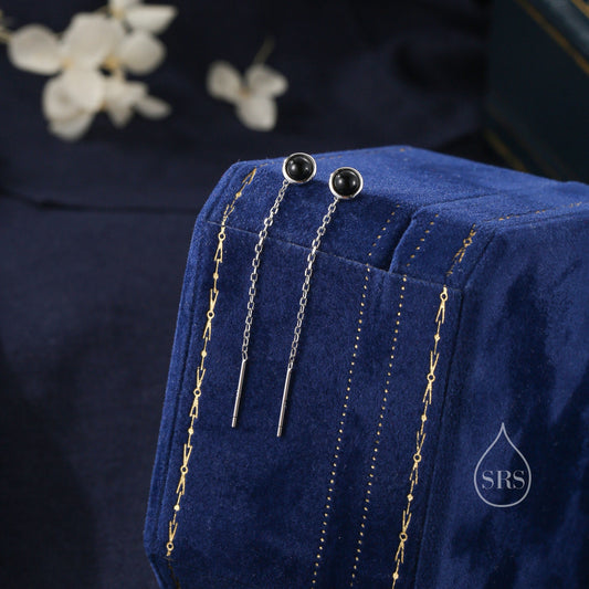 Genuine Black Onyx Dot Threader Earrings in Sterling Silver, Natural Black Onyx Ear Threaders, Silver or Gold, Chain Earrings