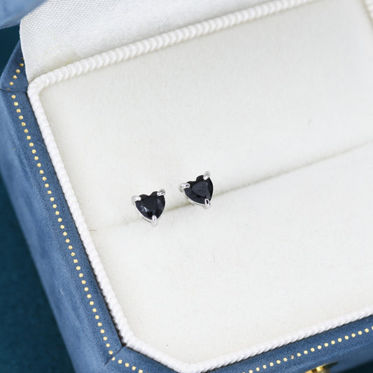Genuine Black Onyx Crystal Heart Stud Earrings in Sterling Silver, 4mm Stone, Heart Stud Earrings, Tiny Heart Earrings