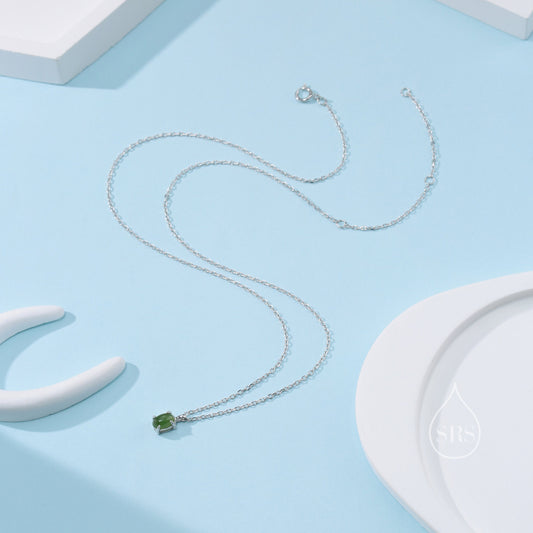 Genuine Green Jade Oval Necklace in Sterling Silver, Dainty Jade Oval Cabochon Necklace, Natural Jade Necklace
