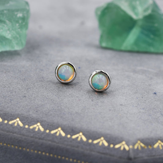 Genuine Ethiopian Opal Stone Stud Earrings in Sterling Silver, 5mm Opal Stud, Natural Semi-Precious Gemstones, Bezel, Minimalist Earrings