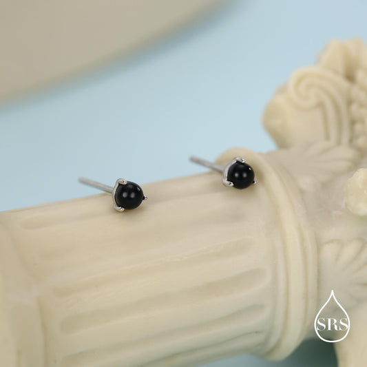 Sterling Silver Extra Tiny 3mm Black Onyx Stud Earrings