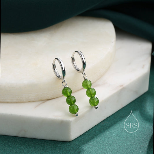 Genuine Jasper Jade Stone Trio Huggie Hoop Earrings in Sterling Silver, Jasper Jade Cluster Dangle Earrings, Three Stone Hoops