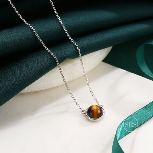 Sterling Silver Genuine Tiger's Eye Dainty Coin Pendant Necklace - Delicate Tiger Eye Stone Coin Necklace