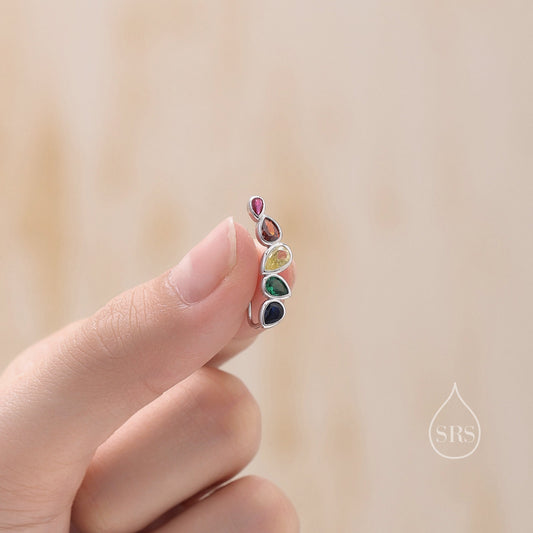 Rainbow Droplet CZ Cluster Crawler Earrings in Sterling Silver, Silver or Gold, Pear CZ Cluster Crawler, Cluster Earrings