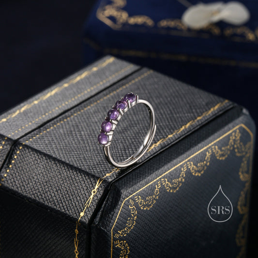 Natural Amethyst Half Infinity Ring in Sterling Silver, Adjustable Size, Purple Amethyst Ring, February Birthstone Ring