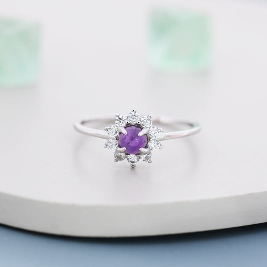 Genuine Amethyst Crystal Halo Ring in Sterling Silver, US 5 - 8, Natural Purple Amethyst Gemstone Ring, Crystal Flower Ring
