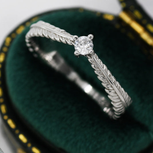 Sterling Silver Fern Leaf CZ Ring, Eternity Ring, Friendship Ring, Nature Inspired Jewellery US 5 - 8