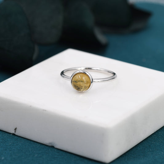 Genuine Yellow Citrine Ring in Sterling Silver, US 5 - 8, Natural Yellow Citrine Ring, 6mm Yellow Citrine Ring