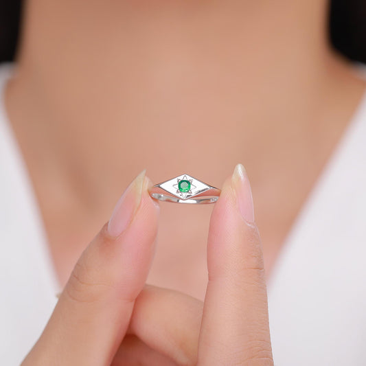 Kite Signet Emerald Ring in Sterling Silver, Silver or Gold, Starburst Emerald CZ Ring, Rhombus Ring, US 5 - 8