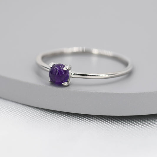 Genuine Amethyst Stone Ring in Sterling Silver, US 5 - 8, Natural Amethyst Ring, February Birthstone Ring, Dark Amethyst Ring