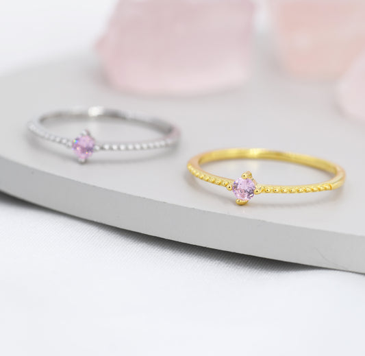Tourmaline Pink CZ Ring in Sterling Silver, Silver or Gold, Delicate Stacking Ring, Pink CZ Skinny Band, Size US 6 - 8, October Birthstone