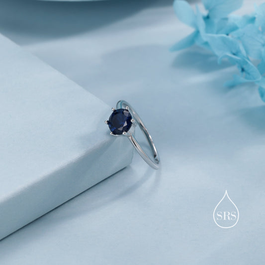 1 Carat Sapphire Blue CZ Ring in Sterling Silver, 6mm Blue Zircon Ring, US Size 5-8, Six Prong Ring, September Birthstone
