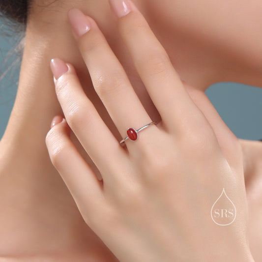 Red Onyx Oval Ring in Sterling Silver, US 5 - 8, Delicate Red Onyx Stone Ring, Natural Red Carnelian Onyx Ring