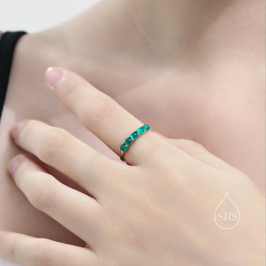 Natural Green Onyx Half Infinity Ring in Sterling Silver, Adjustable Size, Green Onyx Ring, Green Onyx Prong Ring