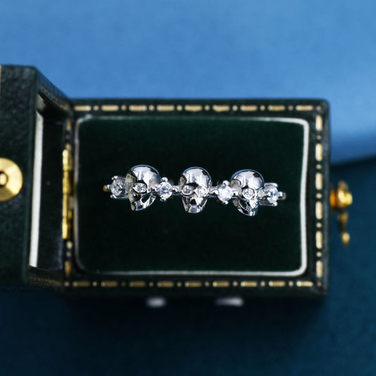 Sterling Silver Triple Skull Ring, Silver Skull Ring, Tiny Skull Ring, US 5-8, Skeleton Ring