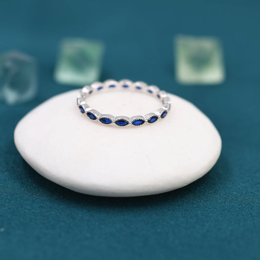 Sapphire Blue Marquise CZ Infinity Ring in Sterling Silver, Skinny Marquise Ring US 5 - 8