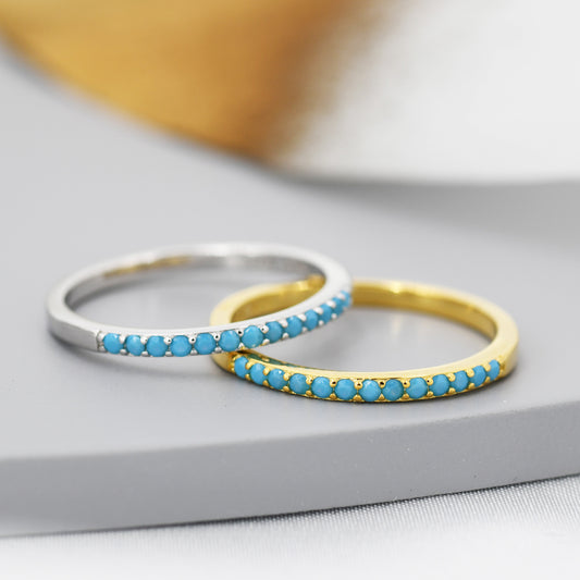 Sterling Silver Turquoise Ring, Eternity Ring, Friendship Ring, Skinny Ring, Stacking Ring, Nature Inspired Jewellery US 5 - 8